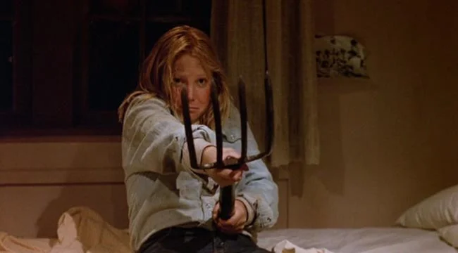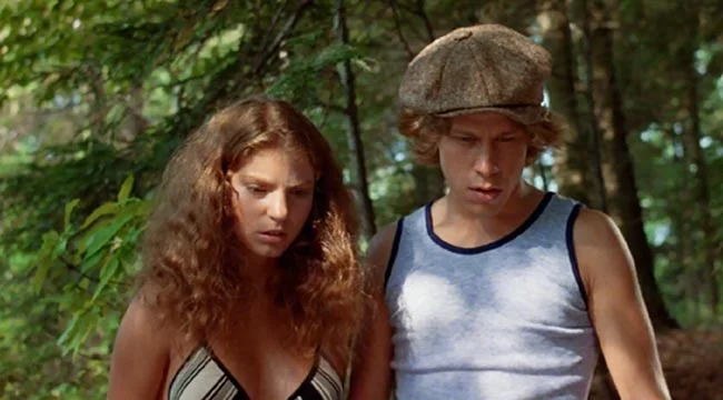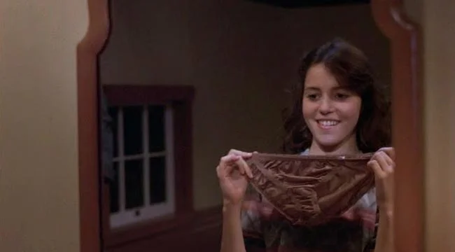 By 1981, “serial killer POV” camera work was pretty well established, but it’s interesting to watch Friday The 13th Part 2 as a stellar example of the literal male gaze at work. Between Ginny and Paul smooching; Terry’s (Kirsten Baker) micro-crop top, bum-exposing shorts, and penchant for skinny dipping; and Jeff and Sandra’s orgasm faces, there is a lot to see here, which makes it all the more creepy when Paul makes that comment about “keeping clean during your menstrual cycle.” Geez, I could probably write a dissertation on that one line alone.